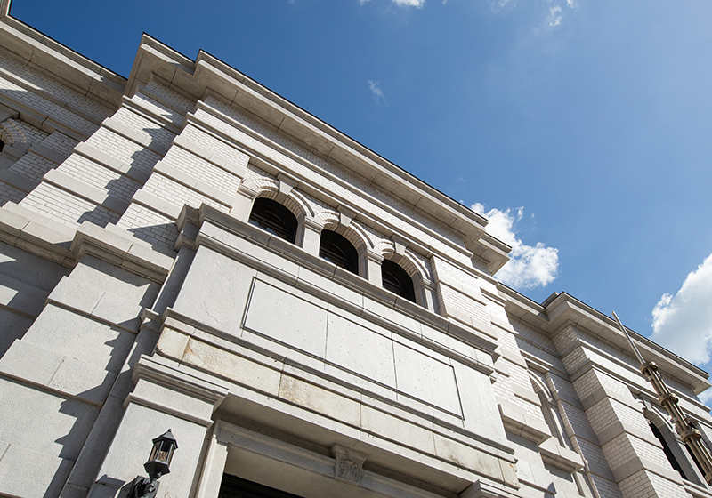 明治42年(1909)に、水戸藩に仕えた川崎八右衛門が設立した川﨑銀行の水戸支店として建設されました。川崎銀行の2代目は建築道楽と言われたほどで、香取市、横浜市、千葉市などにも瀟洒(しょうしゃ)な洋風建築の旧川崎銀行が残っています。