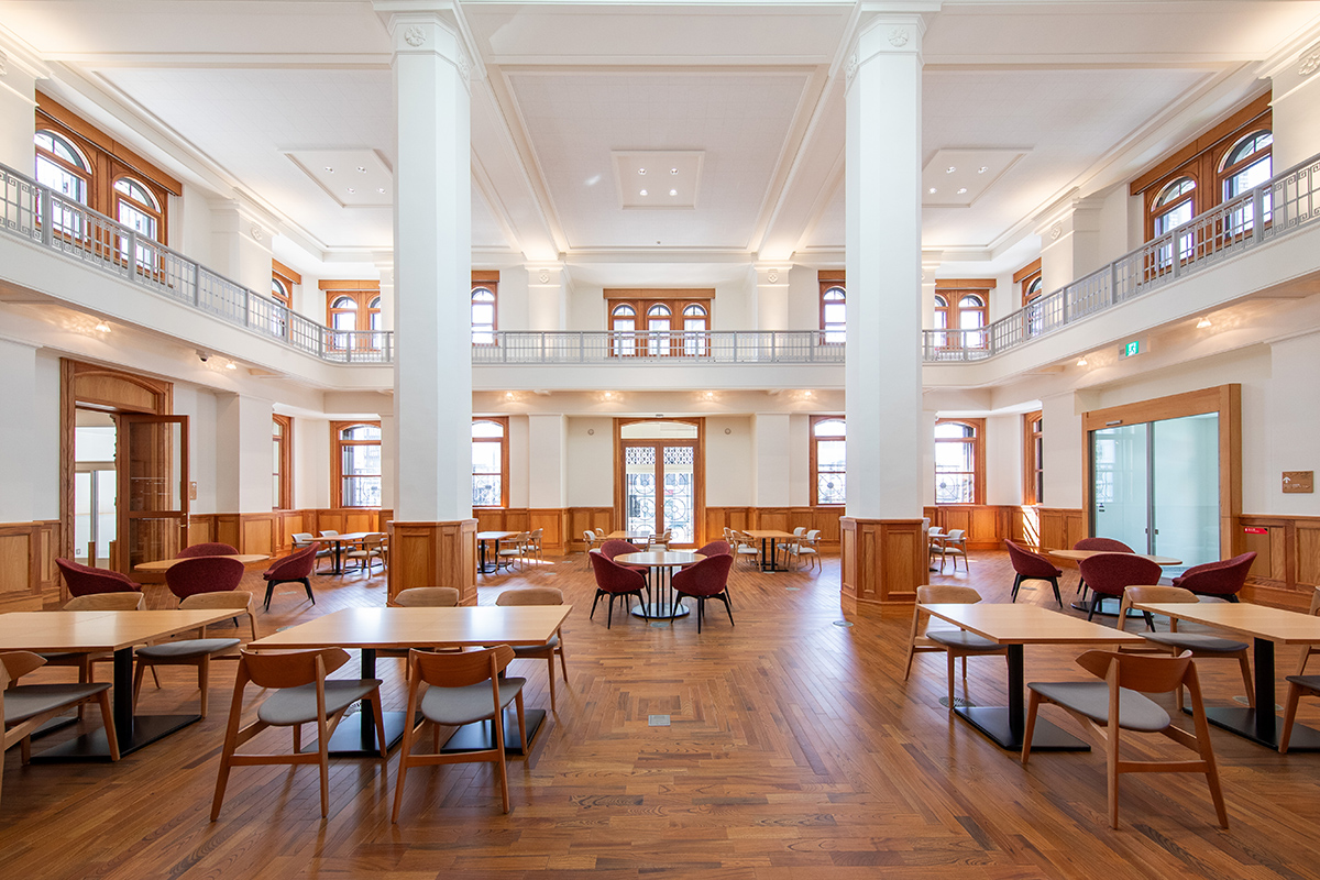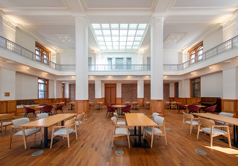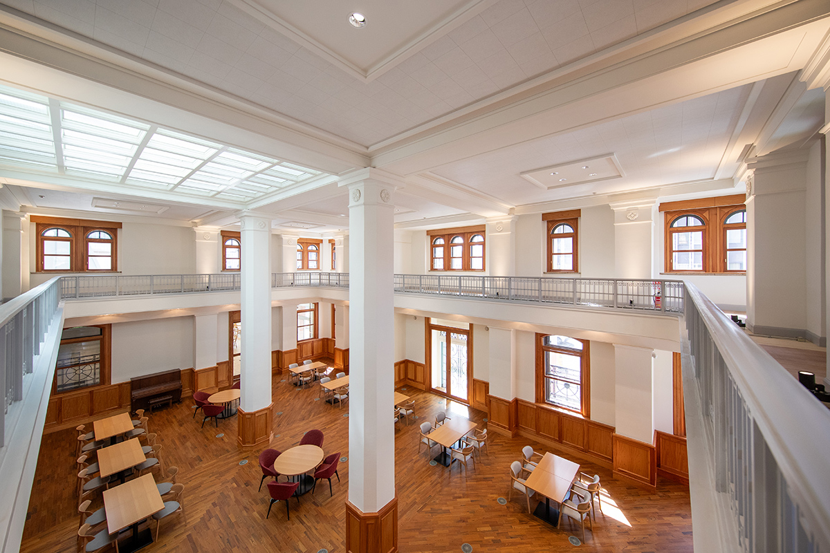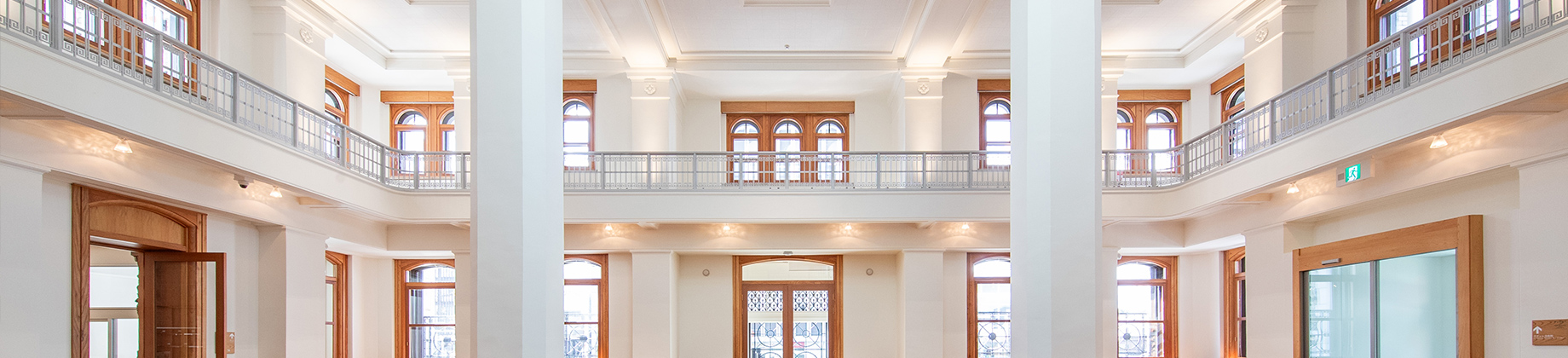 私たちはこの旧銀行棟をクヴェレホールと名付け、皆さまがゆっくり過ごせるような場とし、地域の芸術文化活動などを行う方々にご利用いただくことを考えています。